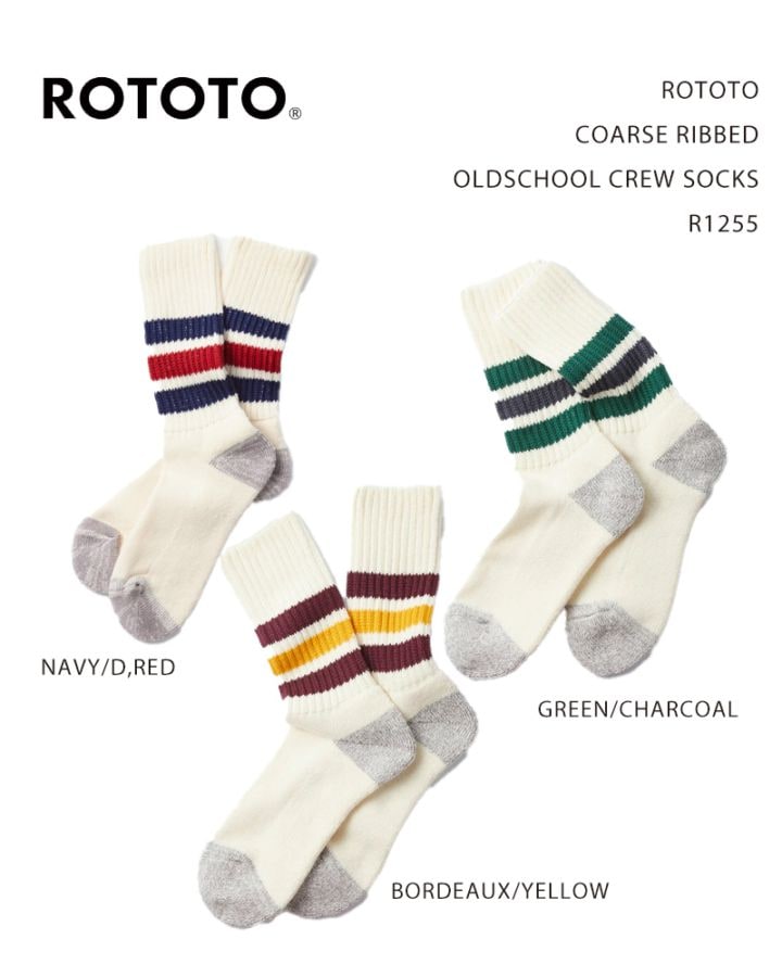 ROTOTO COARSE RIBBED OLDSCHOOL CREW SOCKS R1255 / ロトト リブド オールドスクール クルーソックス