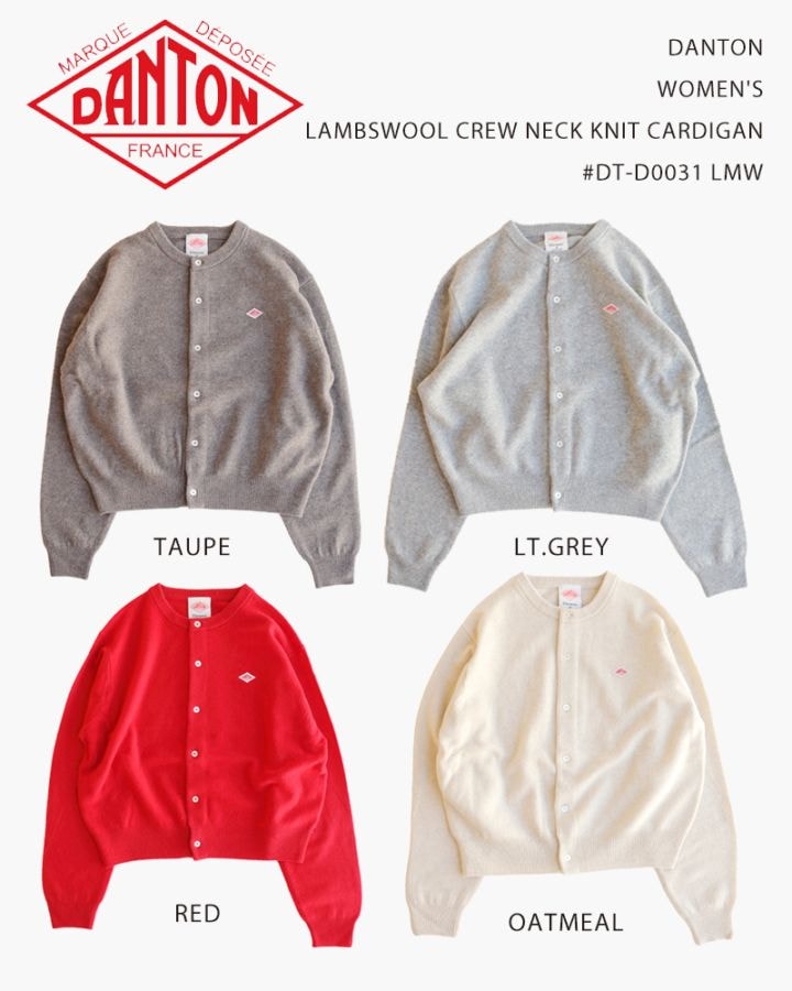 DANTON WOMEN'S LAMBSWOOL CREW NECK KNIT CARDIGAN #DT-D0031 LMW / ダントン ウィメンズラムウールクルーネックニットカーディガン