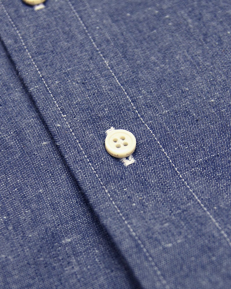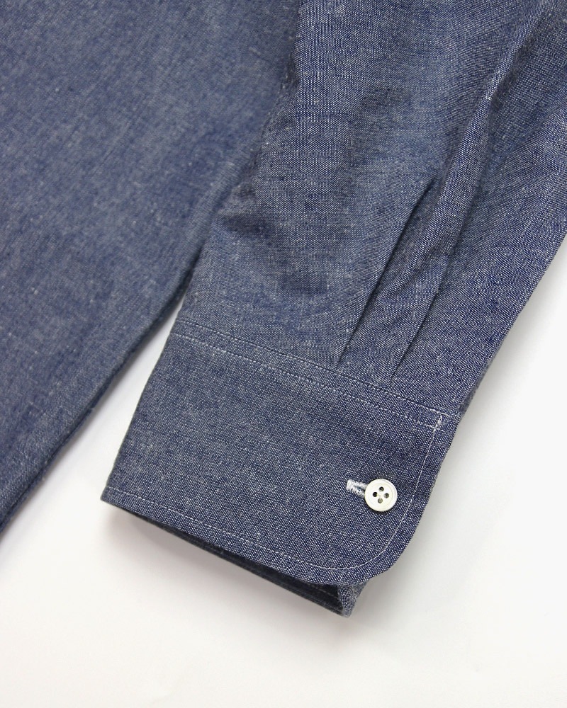 釦はオリジナルのシェル釦、釦サイドにブランド名が削りの刻印が入ります。