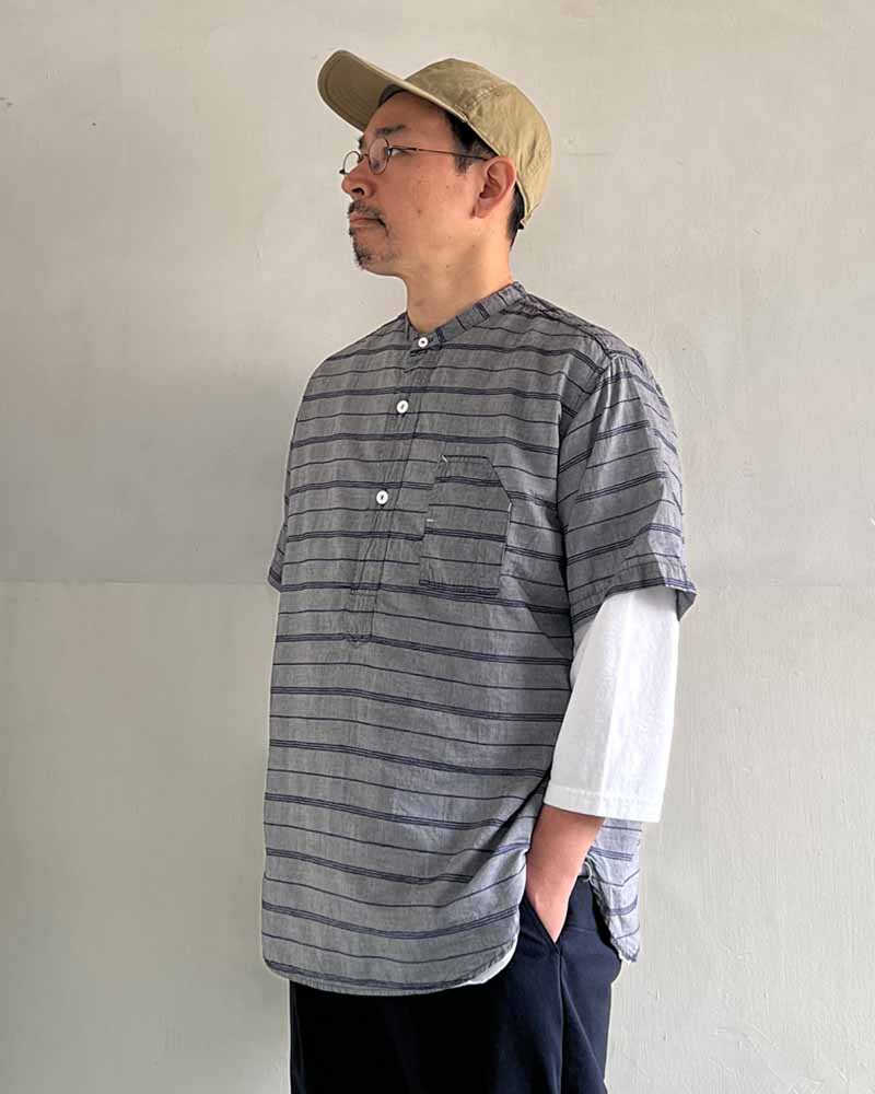 POST O'ALLS Band Collar Shirt S/S #1203S-HSG / ポストオーバーオルズ バンドカラーシャツS/S