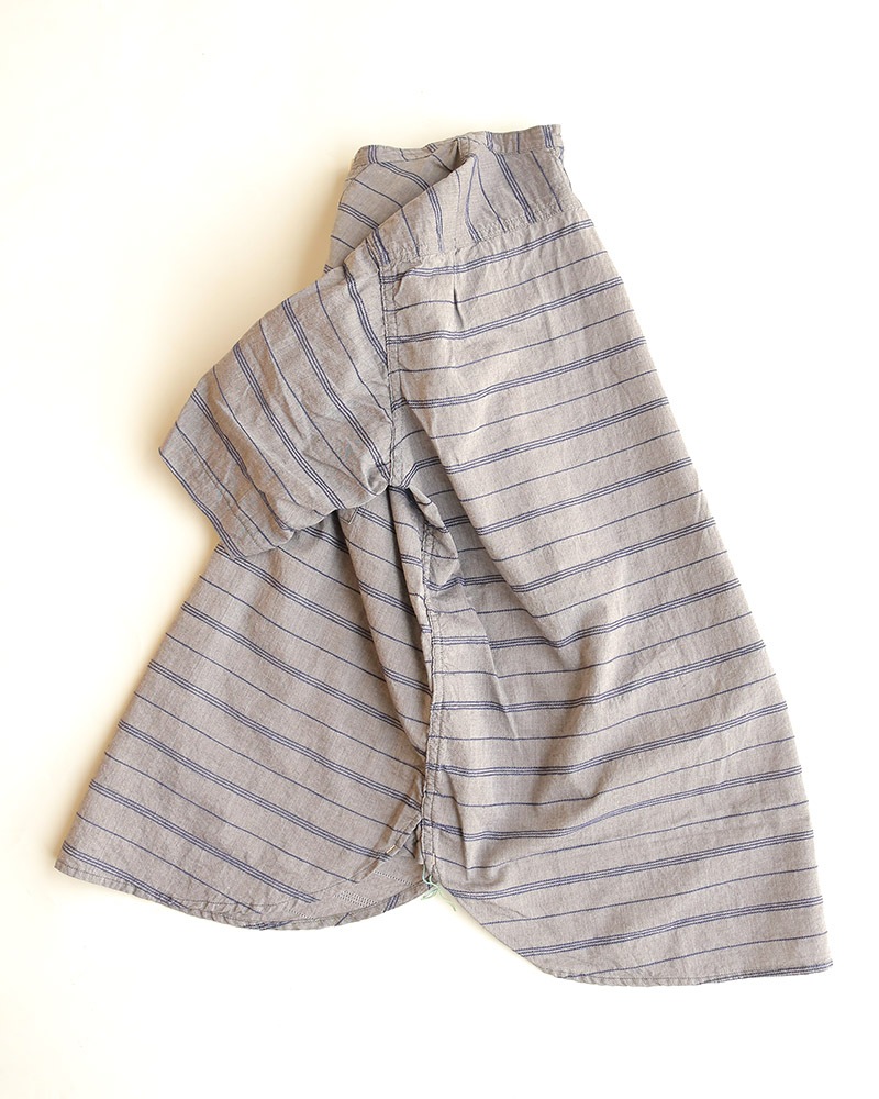 モデルは♯1201のショートスリーブver.♯1203、ウォッチポケットが左胸に付き、バックヨークの両端にはギャザー、手作業による剣ボロなど1920年代の良質なワークシャツのディティールを網羅。